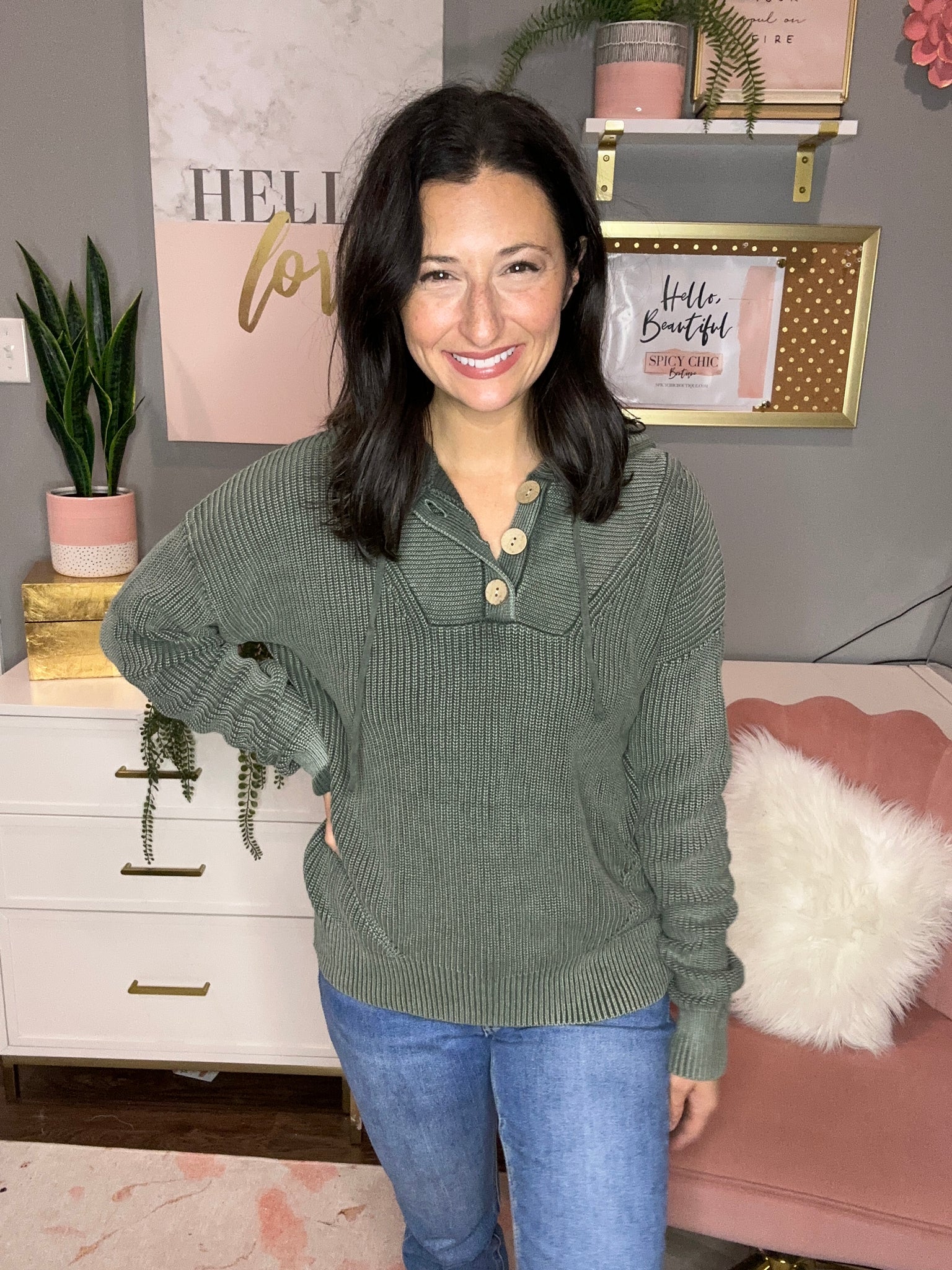 Easygoing comfort meets effortless style in this cozy fall favorite. The Mineral Wash Knit Hooded Sweater features a relaxed fit, soft ribbed texture, and a subtle mineral wash finish that gives it that perfectly lived-in look. The drawstring hood and button detail add just the right touch of casual charm, while the refreshing hue brings a pop of color to your autumn wardrobe.