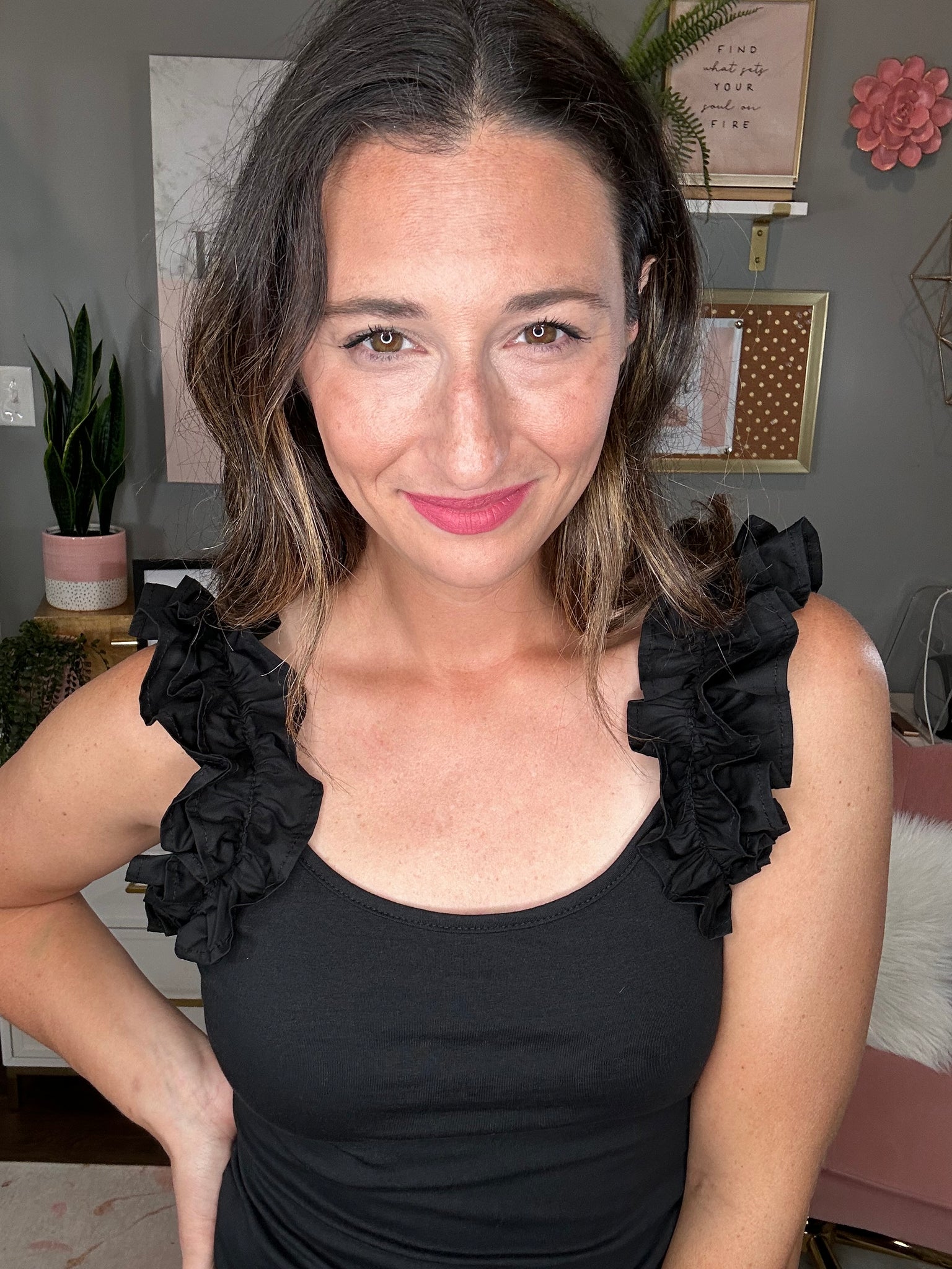 This sleeveless top looks sweet and sexy while the soft material keeps you comfortable all day long. The ruffled straps elevate this tank for a super chic style. This is a great option for date night or girl's night!