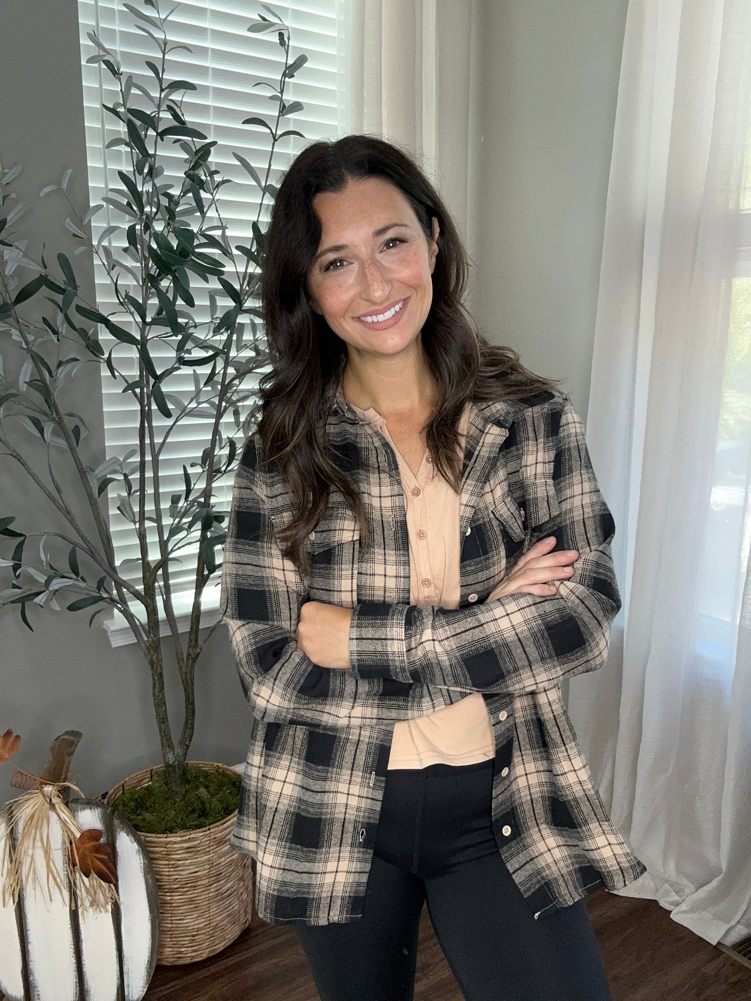 Channel effortless vintage style with this Retro Plaid Shacket. The classic plaid pattern gives a nostalgic, laid-back vibe, while double flap chest pockets add both style and functional detail. Crafted with a brushed fabric finish, this shacket feels soft and cozy against the skin, making it perfect for layering over tees or lightweight sweaters. Its versatile design combines the warmth of a jacket with the ease of a shirt, creating a must-have piece for casual fall days and transitional weather.
