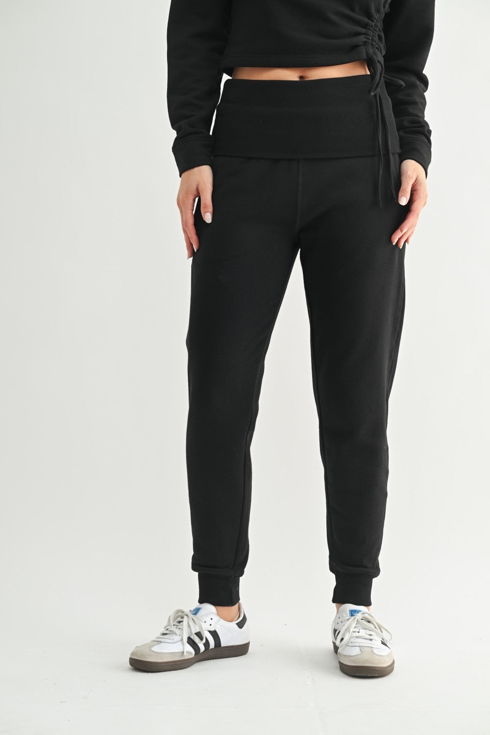 Effortlessly casual and endlessly comfy, our Cozy Essentials Sweat Set is the ultimate off-duty uniform. The pullover sweatshirt features a relaxed fit with a drawstring waist for a flattering touch, while the matching joggers offer a tapered silhouette with an overly cozy fold-over waist and handy side pockets. Crafted from soft, midweight fabric, this set is perfect for lounging at home or running weekend errands in style. Complete your look with our Cozy Essentials Matching Top.